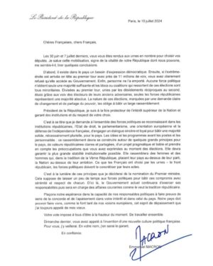Dans ce contexte, le Président de la République a lancé un appel à toutes les forces politiques se reconnaissant dans les institutions républicaines à engager un dialogue sincère et loyal pour bâtir une majorité solide et plurielle pour le pays. Ce rassemblement devra se construire autour de grands principes, de valeurs républicaines partagées et d’un projet pragmatique, tout en prenant en compte les préoccupations exprimées par les Français lors des élections.
